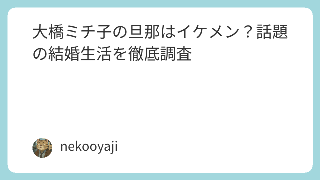 大橋ミチ子さんの旦那さんについては詳細が公開されていませんが、イケメンと噂されるのは外見だけではなく、人柄や支え合う関係性にあるのだと思われます。